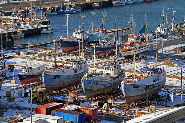 Dutzende Fischerboote lagen zur Reperatur im Hafen