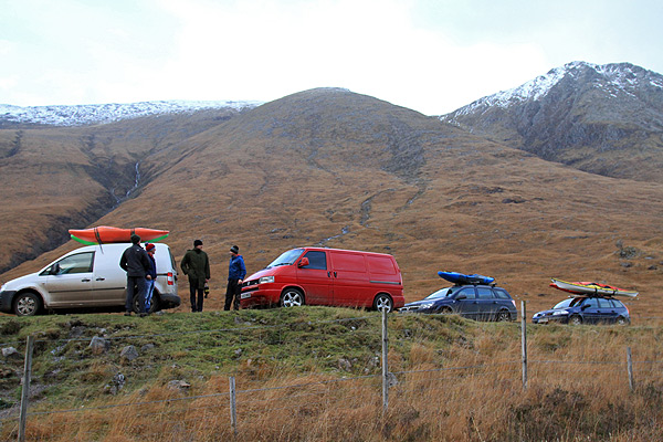 Glen Etive stieß ich auf eine Crew von Wildwasserpaddlern,