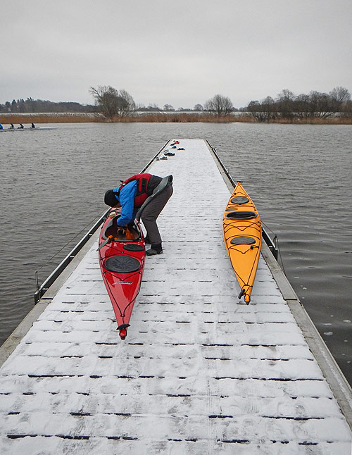 Minus 5 Grad und eine kleine Abnedrunde hatte als Resultat Eispanzer auf den Booten und eingefrorene Spritzdecken...
