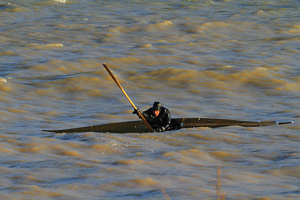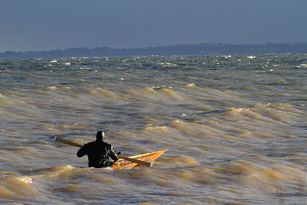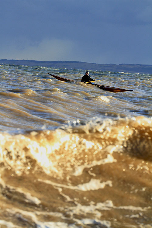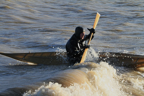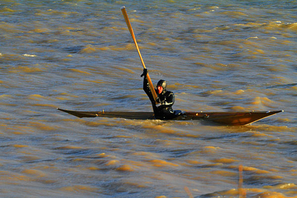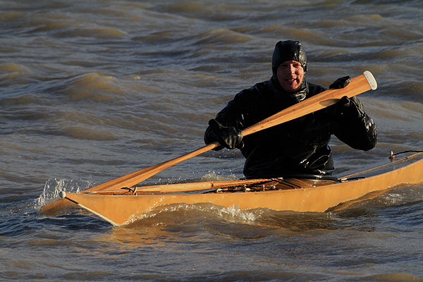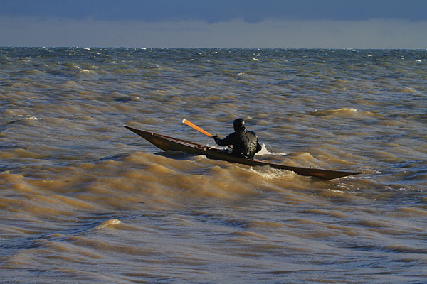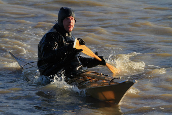 Vor Ort traf ich Motitz mit seinem selbst gebauten Grönlandkajak.