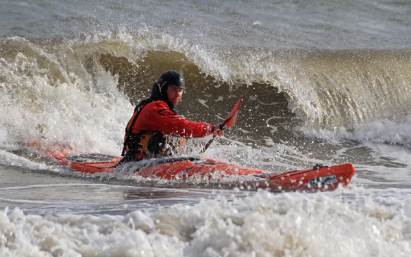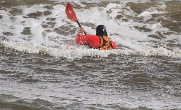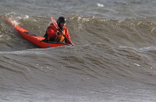 mal nur 1 Kajaker und 10 Wellenreiter im Wasser....