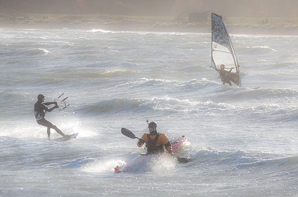 für Kiter und Windsurfer. Die Wellen blieben klein.