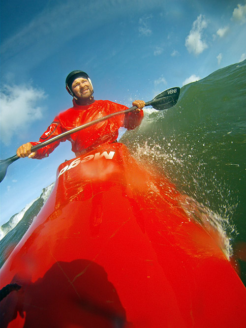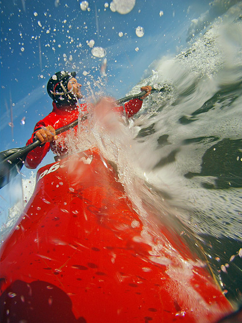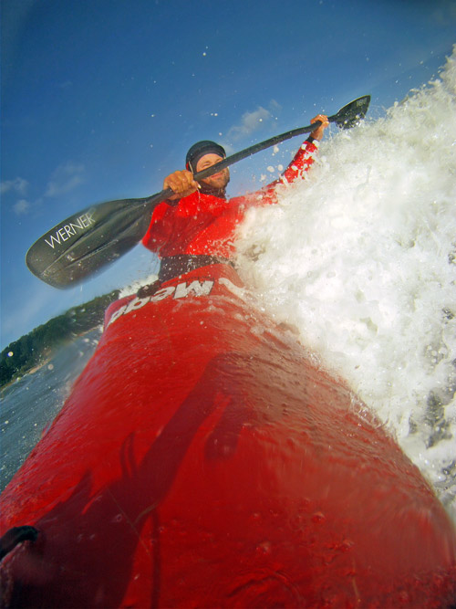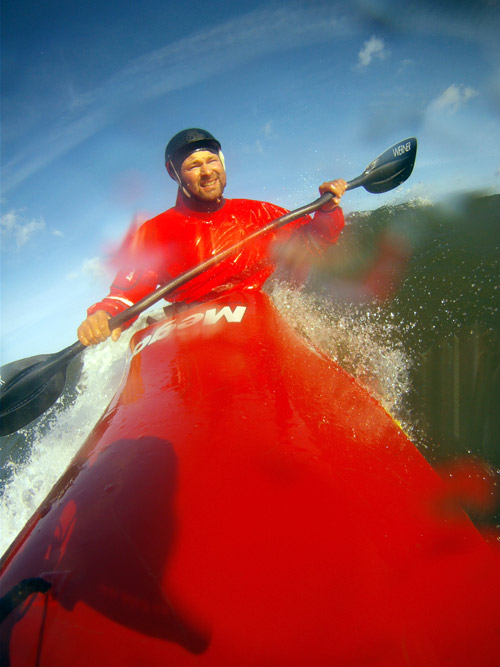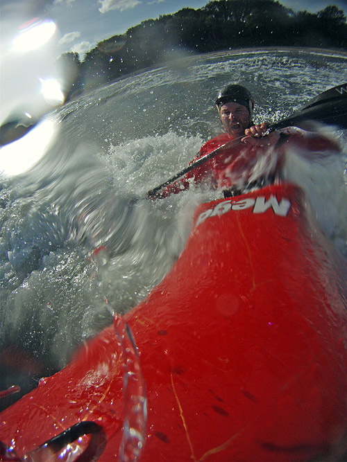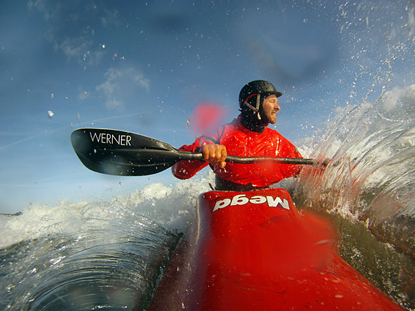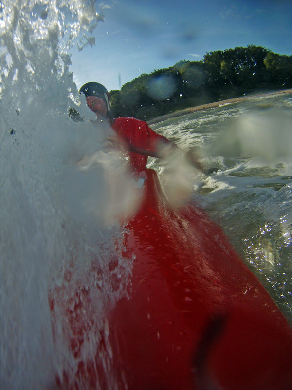 Versuch über die Welle zu "springen". Trotz der Grimassen hatt es geklappt...